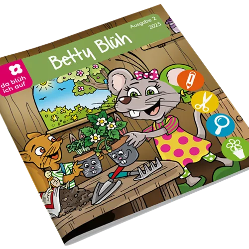 Sechsmal im Jahr zeigt dir Betty Blüh in ihrem Heft tolle Sachen, die du ganz einfach zu Hause nachmachen kannst. Es erwarten dich lustige Spielideen für drinnen und draußen, kuriose Experimente für kleine Forscher und ganz viel Spannendes aus der Welt der Pflanzen.